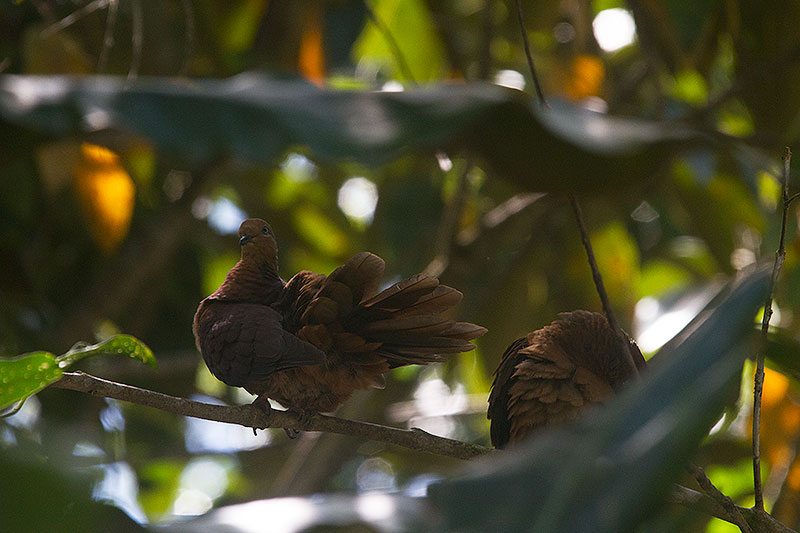 the Brown Cuckoo doves are canoodling (just missed the male bowing his head and puffing out his neck feathers in a courtship display) …